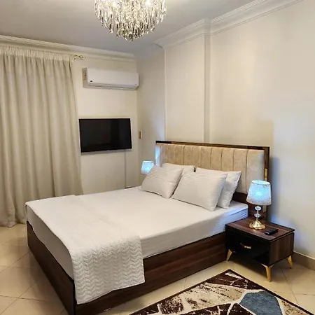 El Elite Apartment In Sheraton Heliopolis 5 Minutes From Cairo Airport dispone de una cocina con un hervidor eléctrico, nevera y un horno. El Elite Apartment In Sheraton Heliopolis 5 Minutes From Cairo Airport está a solo 5 minutos en coche del aeropuerto El internacional del Cairo. El apartamento cuenta con una terraza.
